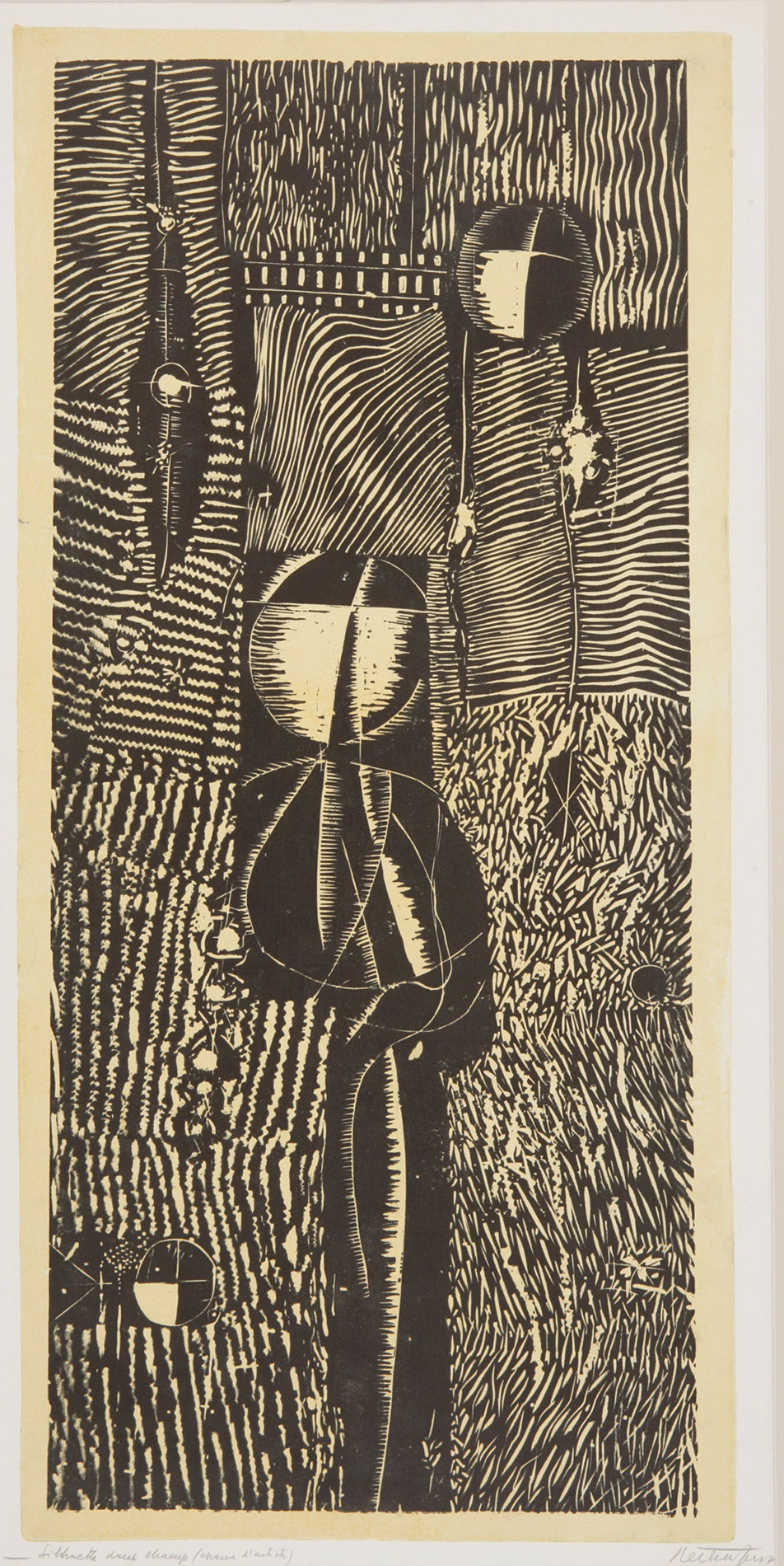 SHADOWS ON THE FIELD, 1978, Woodcut / paper, 65 x 28,5 cm, JR-247-919